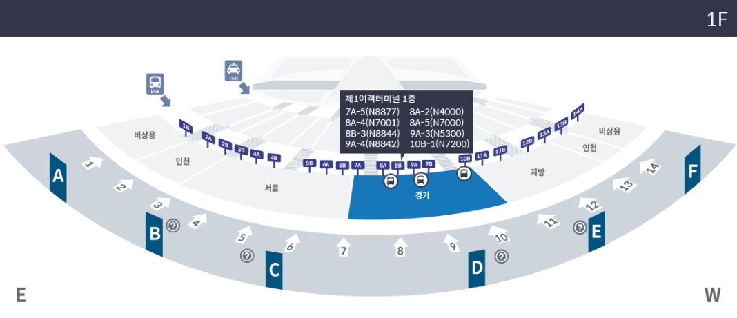 | 경기 심야버스 번호 | 제1여객터미널 1층 승강장 번호 |